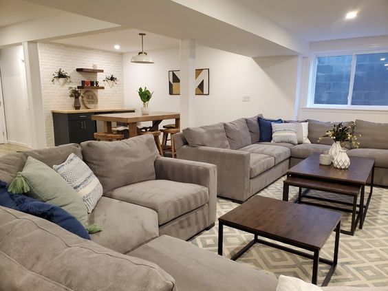 If you want to add warmth to your basement family room, the cream colour is an ideal choice. This soft, neutral shade will help make the space feel more inviting and comfortable.Â